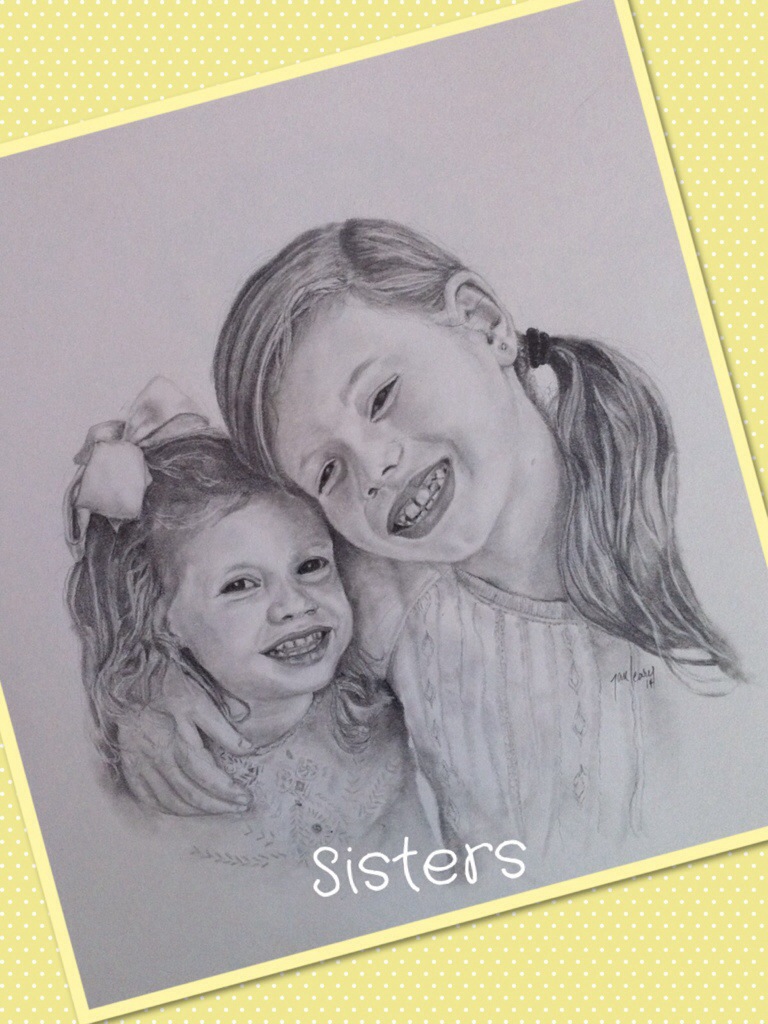 I did this drawing from a photo that was clear but it was a bit dark and had a lot of shadows. The younger girl was also wearing a shirt that was probably dark blue in reality but looked black in the photo. I don’t like drawing black clothes in graphite because it sometimes becomes too overpowering in the final drawing. I learned that the hard way.