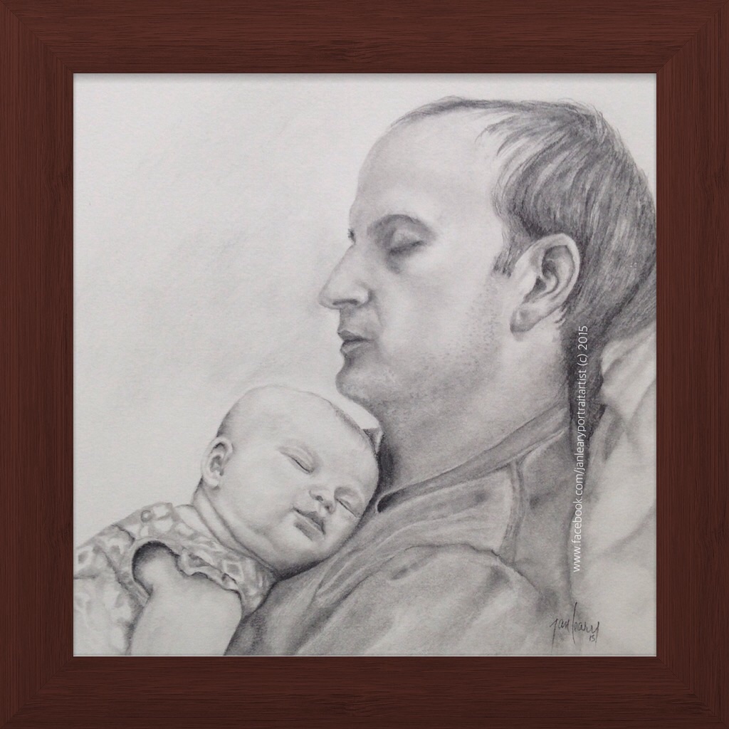 I’ve been wanting to draw a daddy/daughter portrait for some time. I love drawing moms/grandmoms with their babes so I wanted to do one of a new daddy too. Dad’s are an important part of the equation. When I was commissioned to draw this, I couldn’t wait to get started. As I was drawing, I was constantly reminded of how we can rest in our Heavenly Father’s arms. Â Psalm 55:22 says “Cast thy burden upon the Lord, and he shall sustain thee: he shall never suffer the righteous to be moved (or he will never allow the righteous to be shaken).”